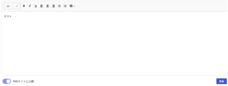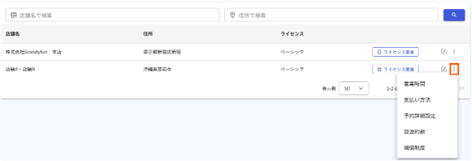 貸渡約款・補償制度の設定 1.店舗一覧画面の赤枠アイコンをクリックすることで表示されるメニューの貸渡約款(補償制度)をクリックします。 2.各種設定画面に内容をご入力のうえ、公開設定(画面左下箇所)を行い更新を押下することで各種情報の設定は完了です。 3.ご登録いただいた貸渡約款・補償制度の公開場所は予約サイト上の予約画面に配置されます。