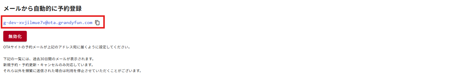 2. 有効化を行うことで表示されるメールアドレスをコピーします。