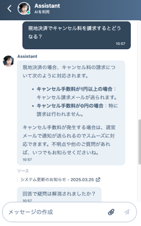 アシスタント機能は管理画面に常設されており、よくあるご質問への回答や、操作手順の案内を迅速にサポートします。